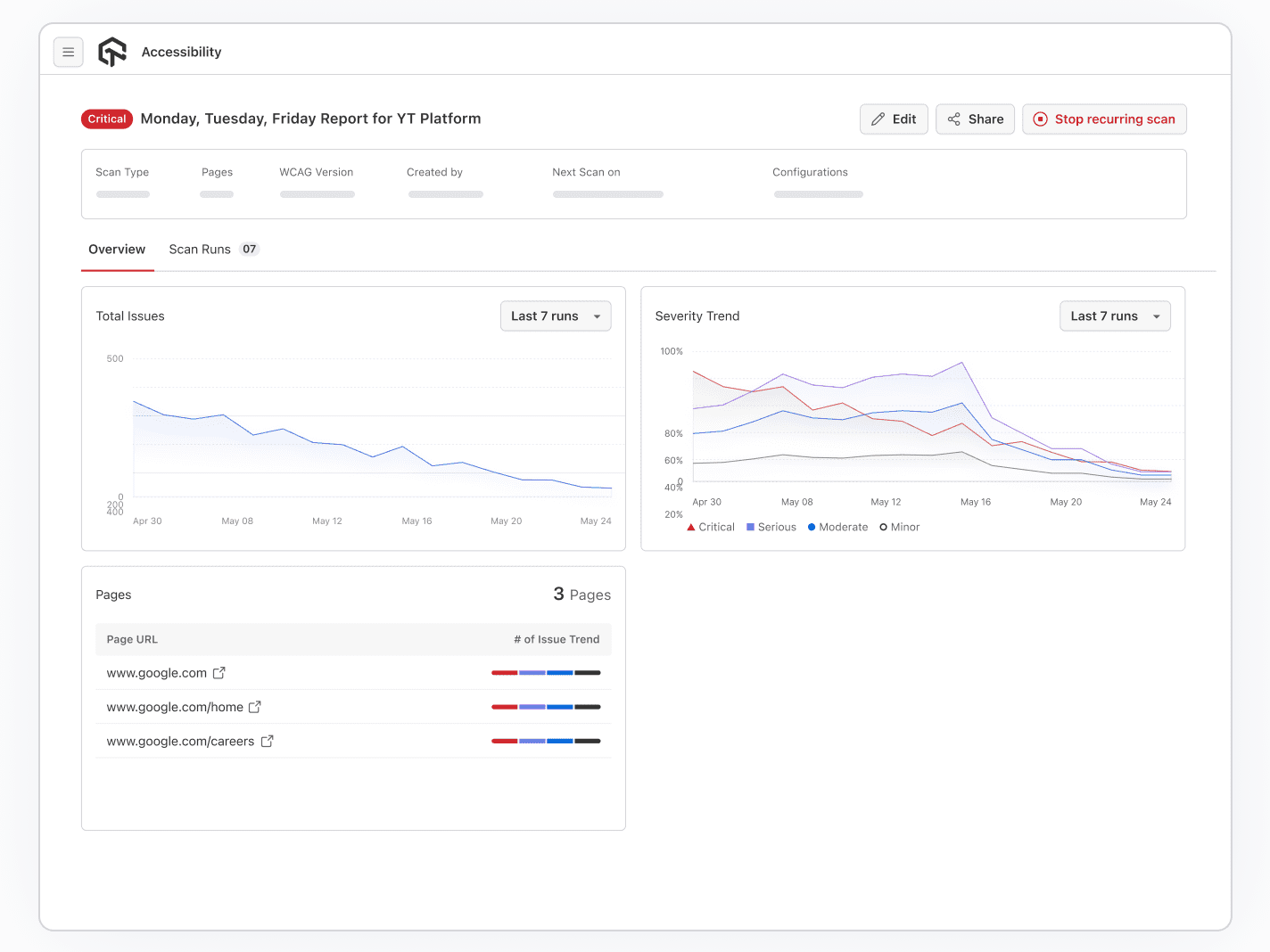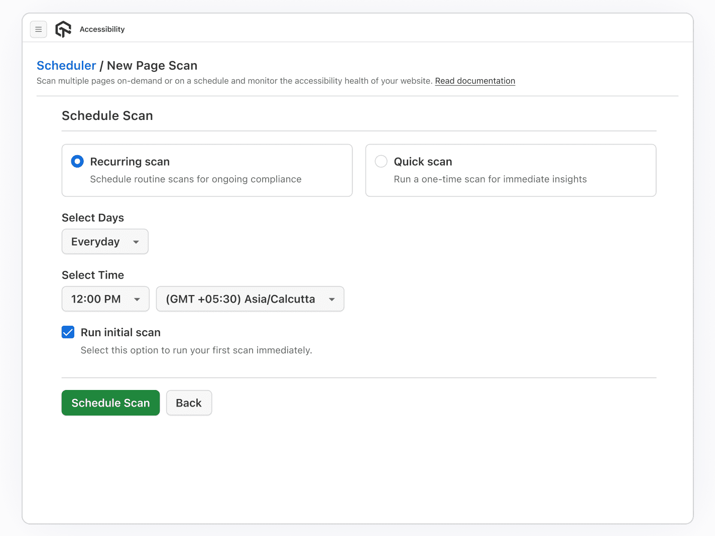 Automate recurring or one-time accessibility scans and significantly reduce manual effort while ensuring high standards of accessibility compliance.