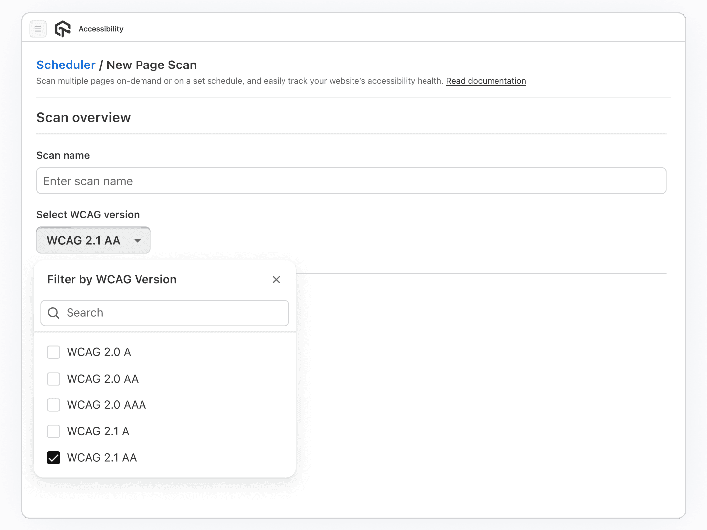 Automate recurring or one-time scans for a faster, reliable process and achieve WCAG compliance with minimal manual intervention.