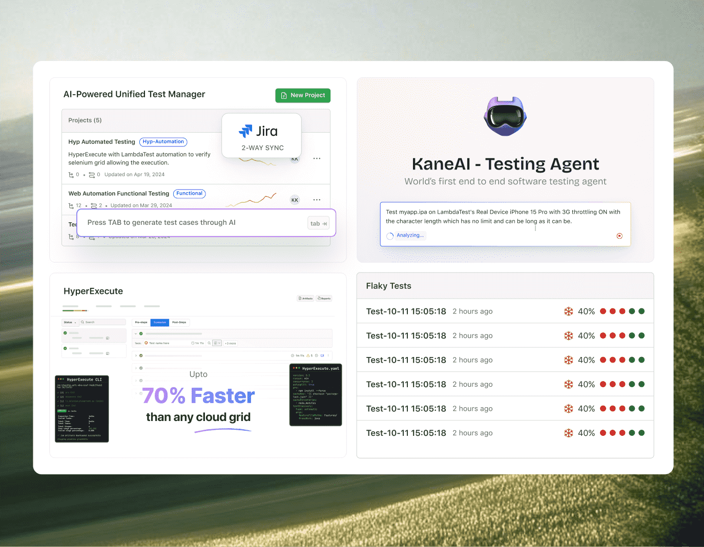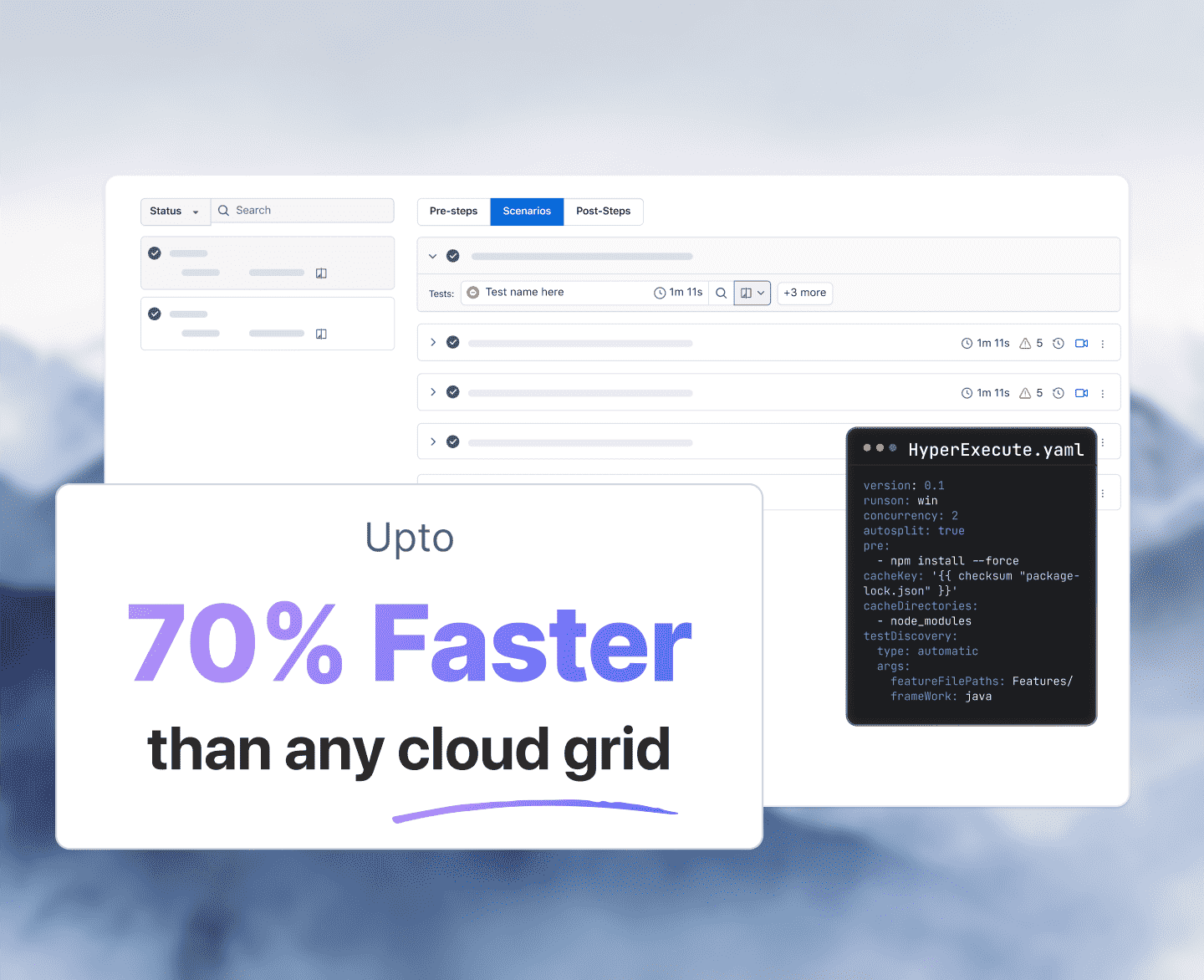 AI-native orchestration with TestMu AI's HyperExecute that intelligently groups, distributes, and reorders your tests to surface failures faster.