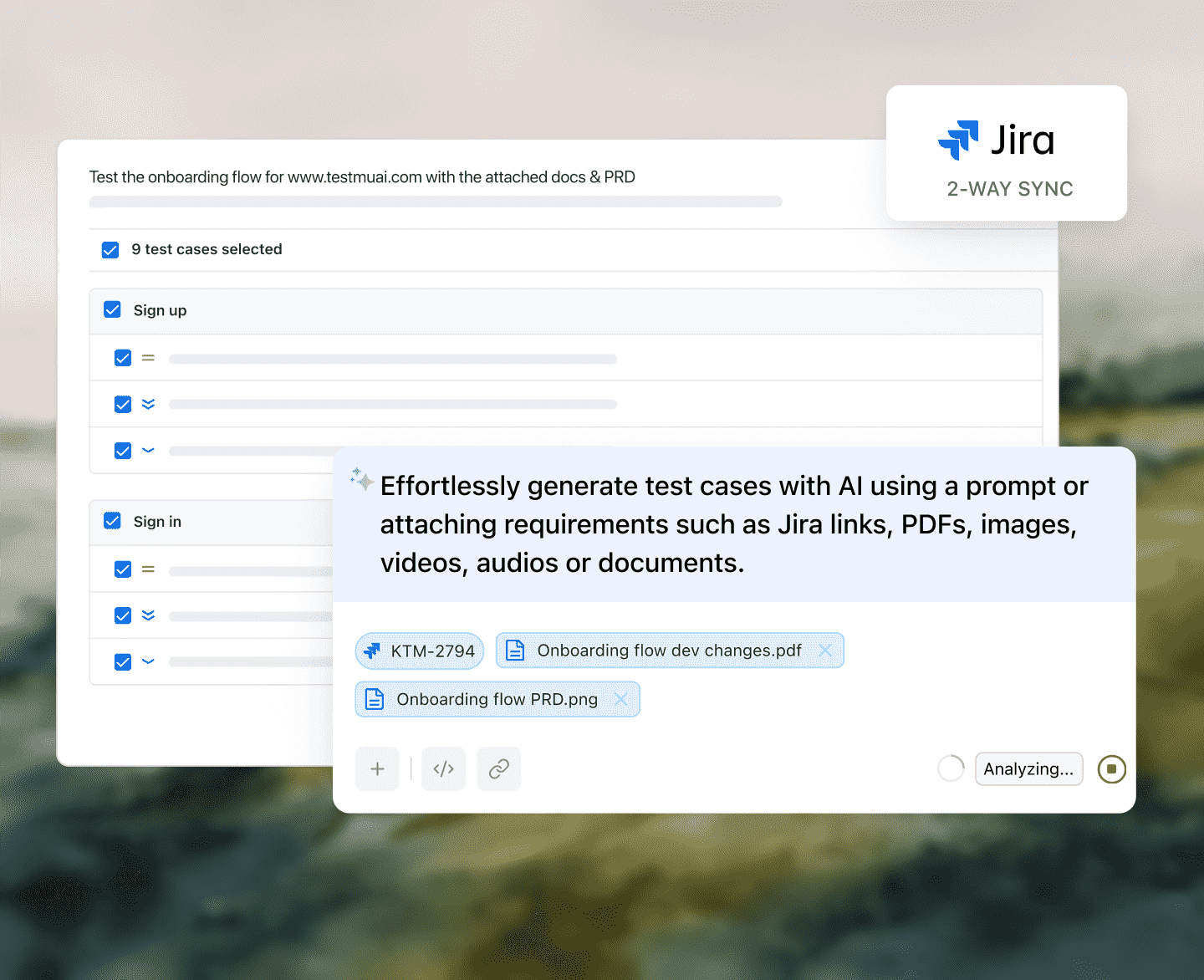 AI-native centralized platform that simplifies every stage of your testing process, from test case creation to build management & results tracking.