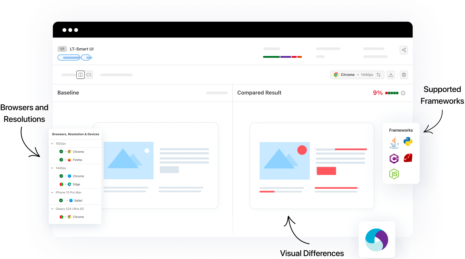 Smart Ignore uses homegrown AI algorithms to move beyond pixel-to-pixel comparisons, filtering out layout shifts, displacements, and visual noise for cleaner and accurate visual testing results.