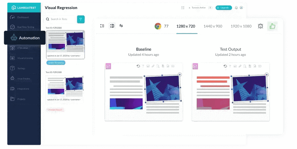 Smart UI Comparison enables you to identify visual deviations introduced with the new build. You can easily identify visual differences between versions of an application by instantly spotting changes in icon size, padding, color, layout, text, and much more.