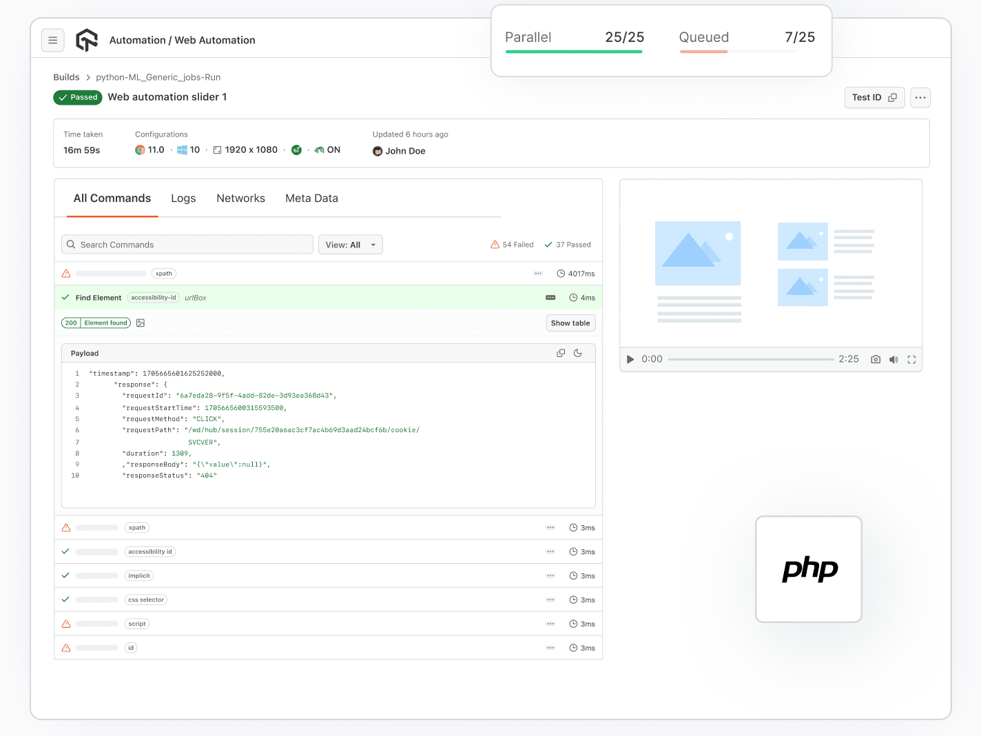 Run PHP automated tests on reliable, scalable, and secure cloud-based infrastructure. Get instant on-demand access to 3000+ desktop and mobile browser environments.