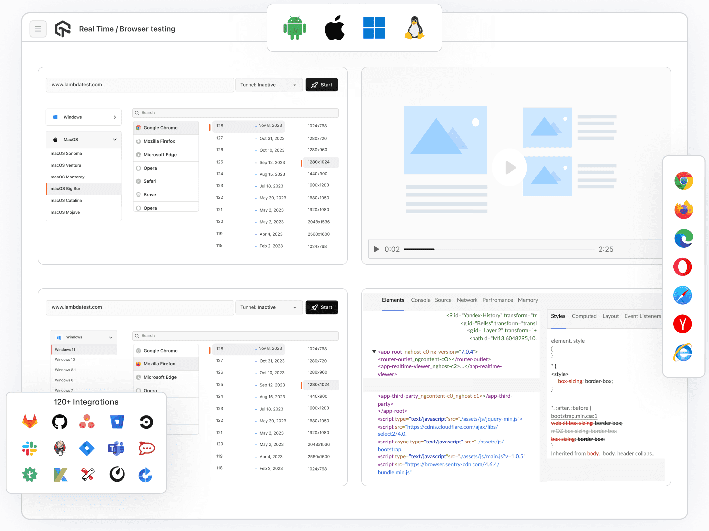 We offer live-interactive testing on 3000+ remote browser environments. This enables you to check your websites across windows and macOS operating systems, web browsers, browser versions, and resolutions in real-time.