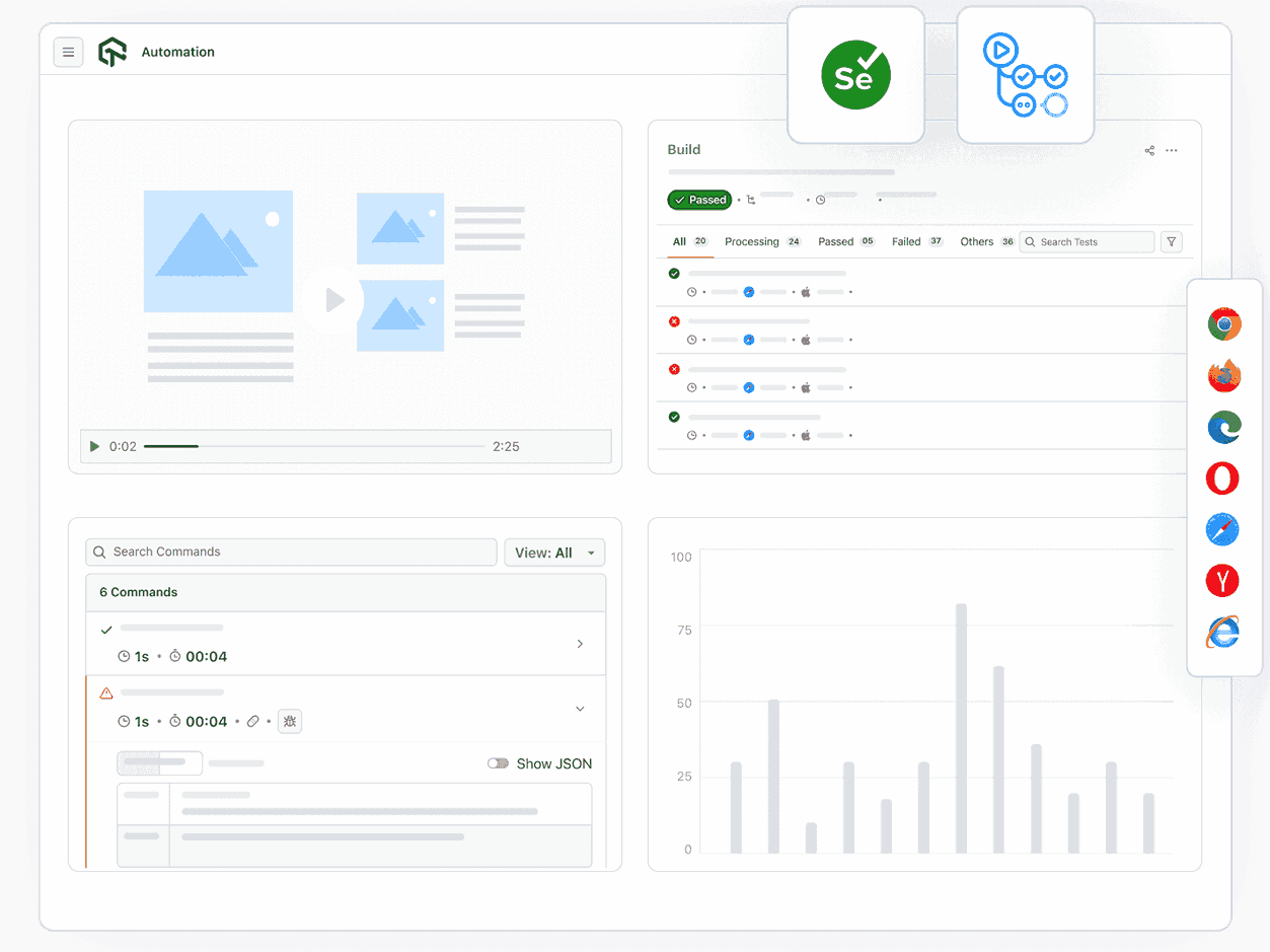 Debug each test run with end-to-end test execution logs. Get complete Selenium execution logs, video logs, network logs, viewport screenshots and much more.