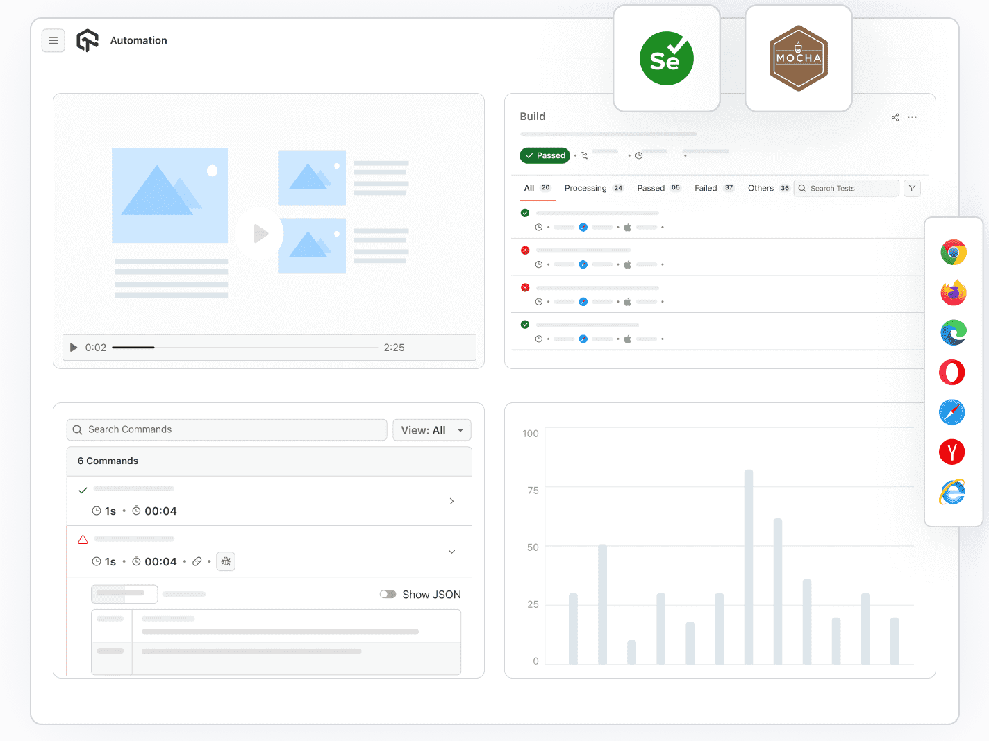 Get access to detailed statistics of total tests run, error rates, test coverage and many more metrics along with Timeline charts and Automation logs. Evaluate your test automation performance using LambdaTest.
