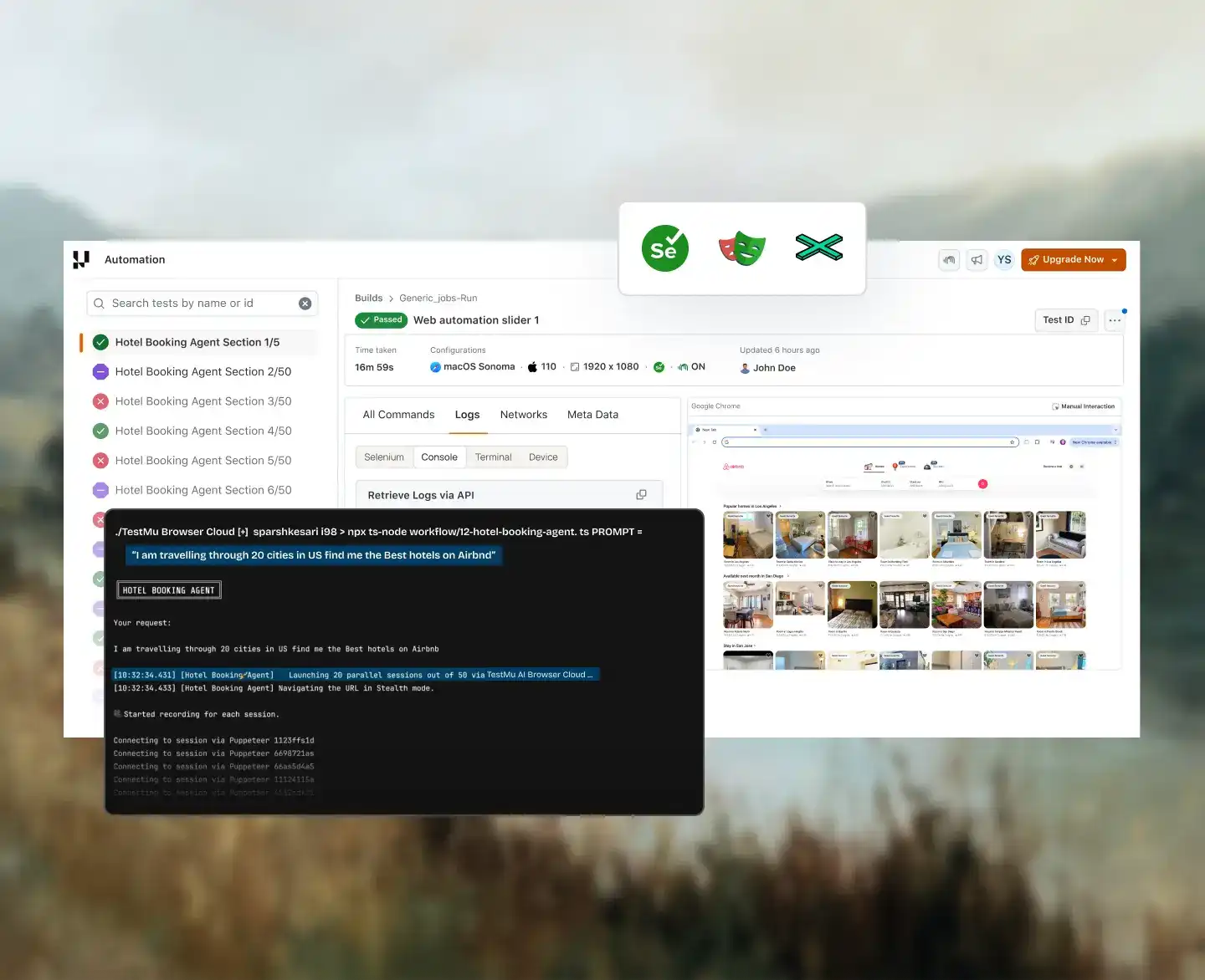 Get Started For Free- Access command logs, network logs, and raw Selenium logs in one view.