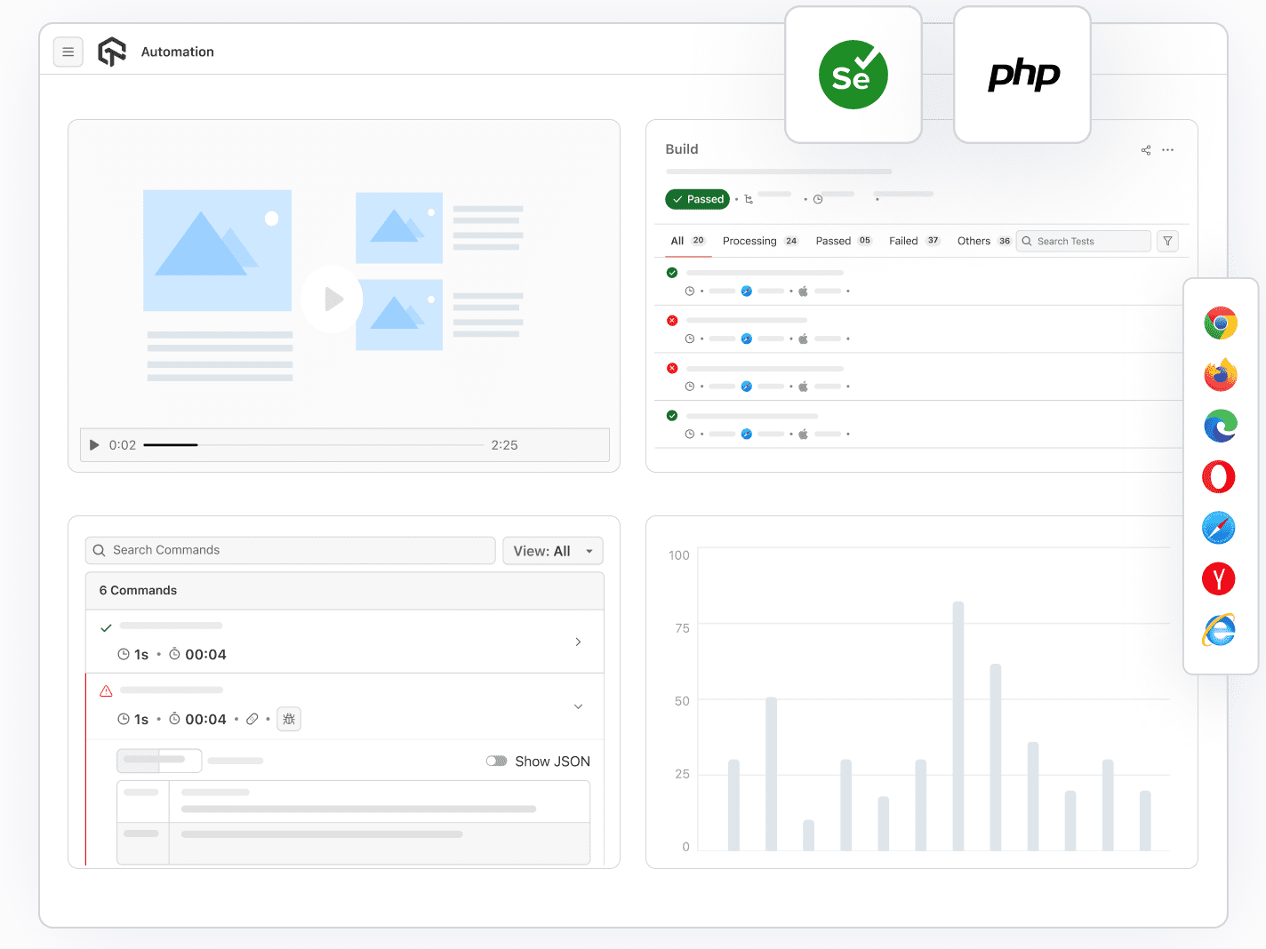 Debug issues faster than ever with LambdaTest through detailed logs generated for each Selenium PHP test runs. Logs include raw Selenium logs, exception logs, network logs, command logs, and an entire video log taken on a real devices hosted on cloud-based infrastructure.