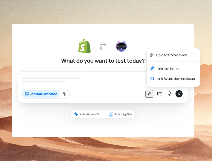 Author tests for Shopify websites and web apps using KaneAI to cover key user actions and flows without complex setup.
