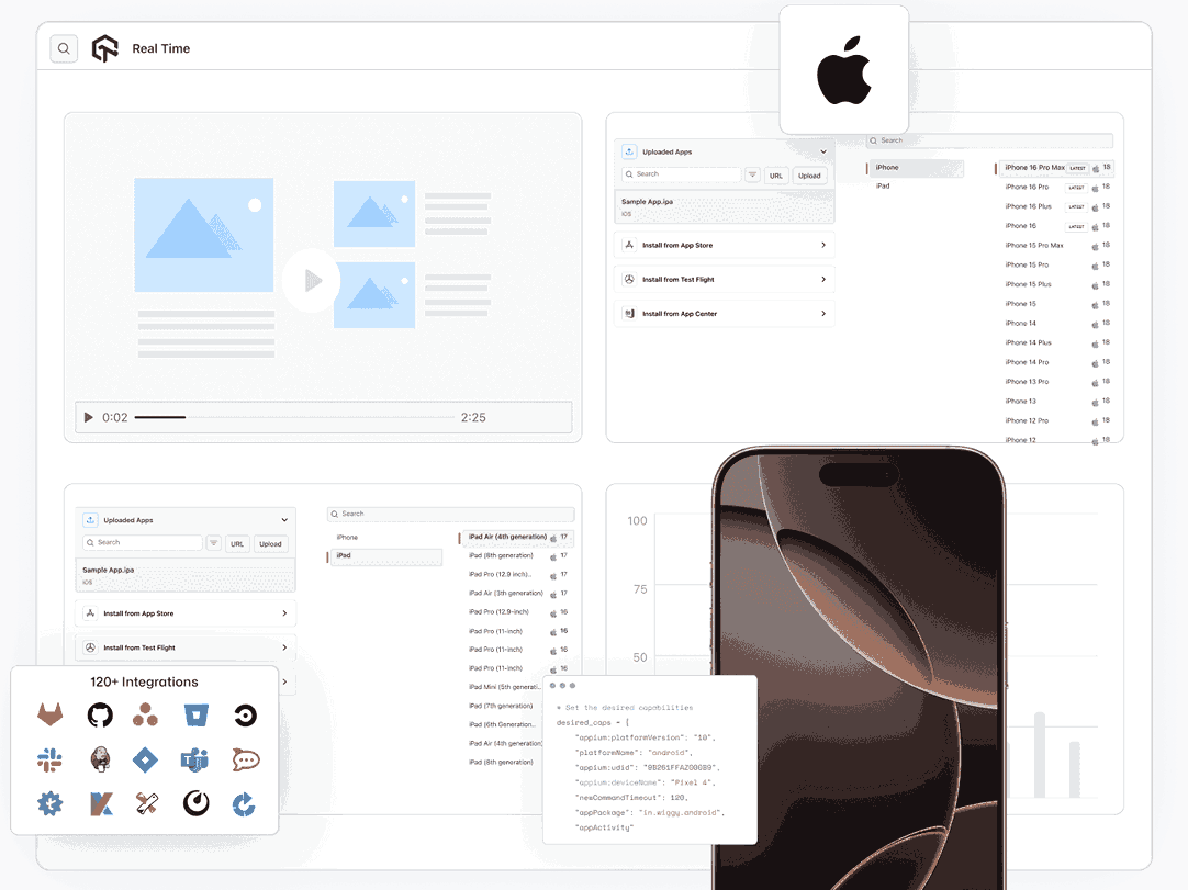 Run unlimited live iOS device testing, mimicking real-world conditions for 100% accurate testing. Access the latest to legacy real iPhones and iPads, across iOS versions ranging from 8 to 18.